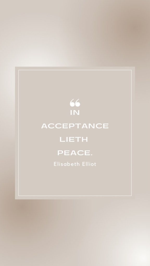 “In acceptance lieth peace.” –Elisabeth Elliot