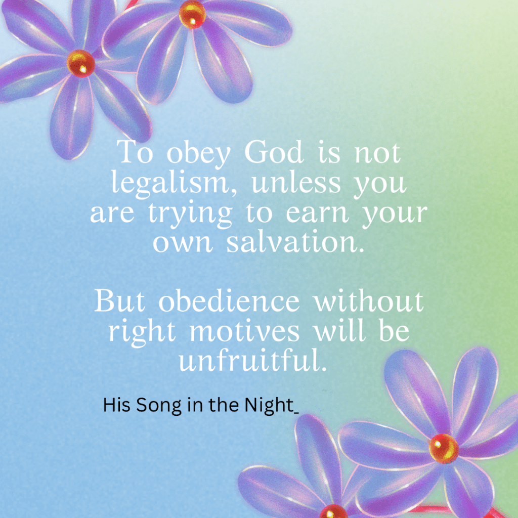 I have been doing a lot of thinking lately on the difference between legalism and obedience, especially since there has been much to say about Christian movements that push outward conformity over the change Jesus brings to the heart.