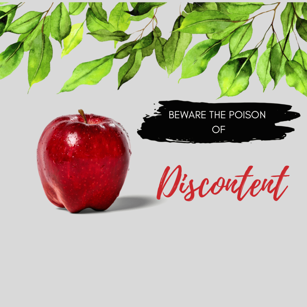 Mother Eve in the Garden of Eden tasted the poison of discontent first. (See Genesis 3.) We can assume it came wrapped in a pretty package, albeit one that God had forbidden. The serpent (Satan, the enemy of God) convinced her that God was keeping His best from her. The Bible attests that Eve was deceived by the serpent, and she chose to follow her heart’s desire for more, rather than rest in all God had already given. Her choice altered her life and the lives of her sons and daughters forever.