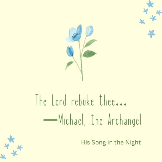 Jude says that when Michael the Archangel of Heaven contended with Satan over the body of Moses, he only said, “The Lord rebuke thee.” Jude 9. In heaven, when the “old Accuser” is cast out of heaven, the saints overcome him by the blood of the Lamb, and by the word of their testimony.